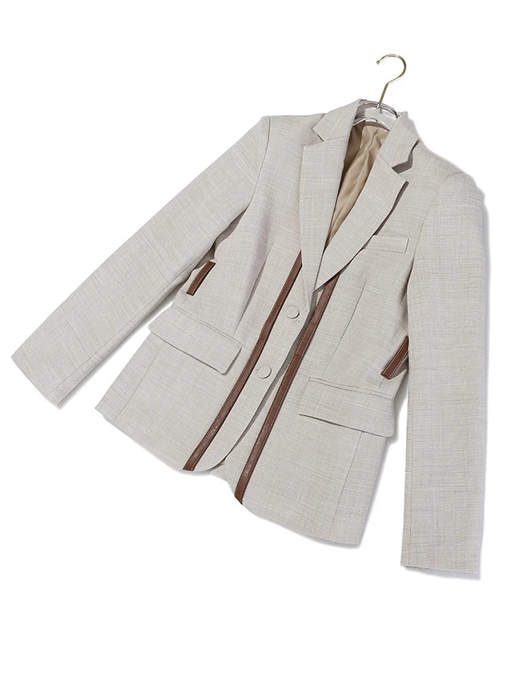 Designed in a soft neutral tone with clean lapels and sharp lines, it flatters petite proportions while adding a touch of contemporary edge. Pair it with trousers for an executive moment, or style it with jeans and heels for effortless off-duty polish.