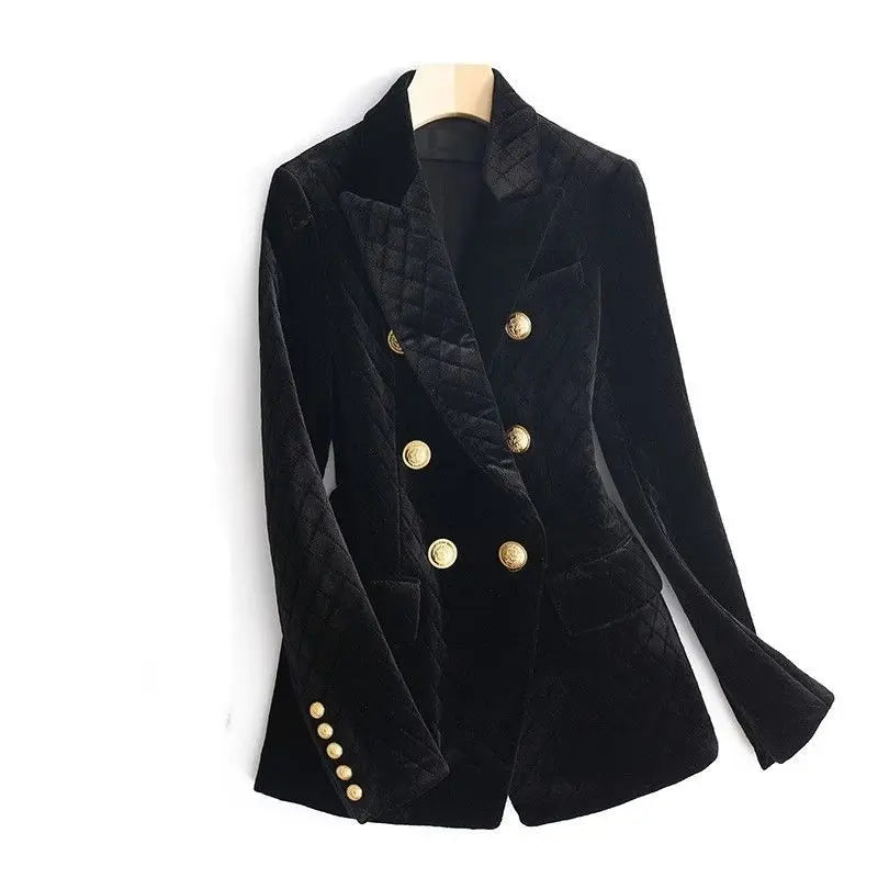 - Women’s double-breasted velvet blazer