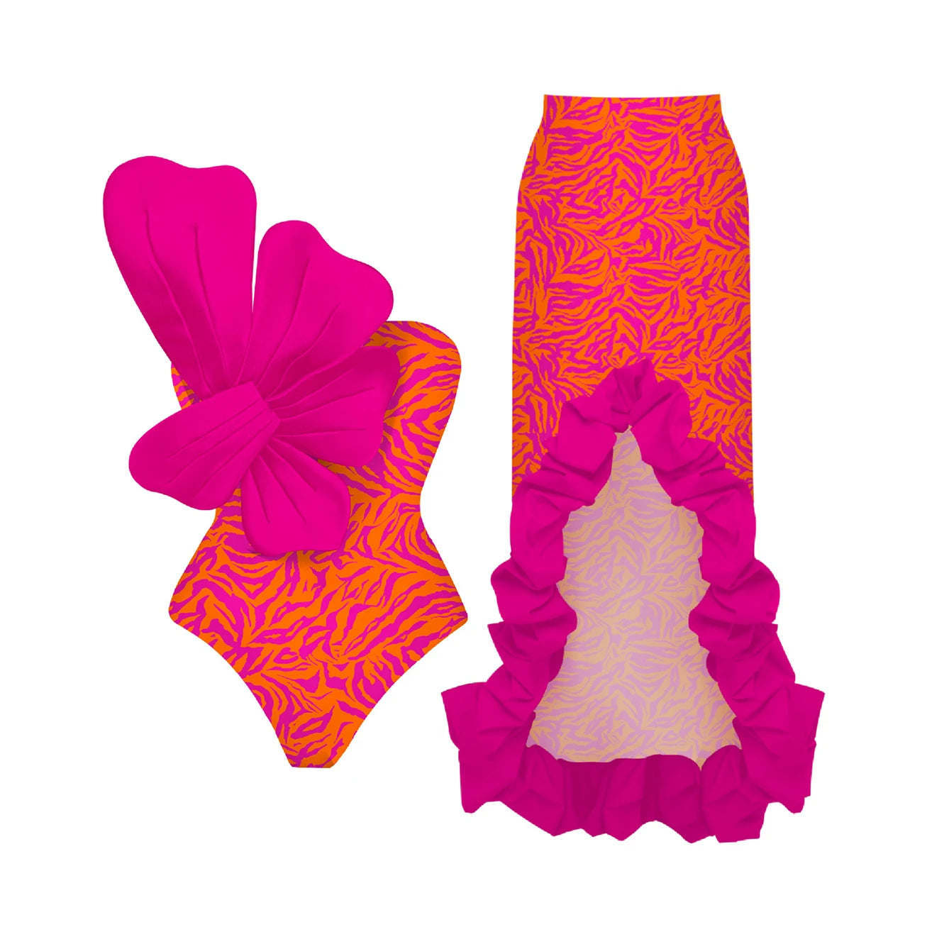 • Includes one (1) one-piece swimsuit + matching cover-up / skirt / sarong