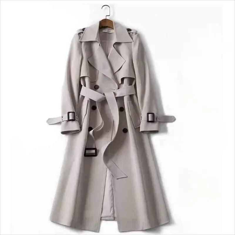 Your ultimate go-to outerwear for effortless sophistication. This longline trench coat is designed with clean lines, a slimming silhouette, and a belted waist that flatters every figure. Whether you’re heading to the office, strolling the city, or layering up for winter, this coat delivers timeless style with a modern edge.