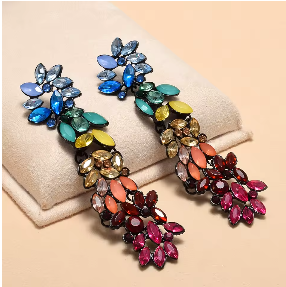 Crafted with shimmering multicolor stones, these drops bring instant confidence and personality to any outfit. Slightly weighty by design, they offer that luxurious, “I actually dressed up today” feel without losing comfort.