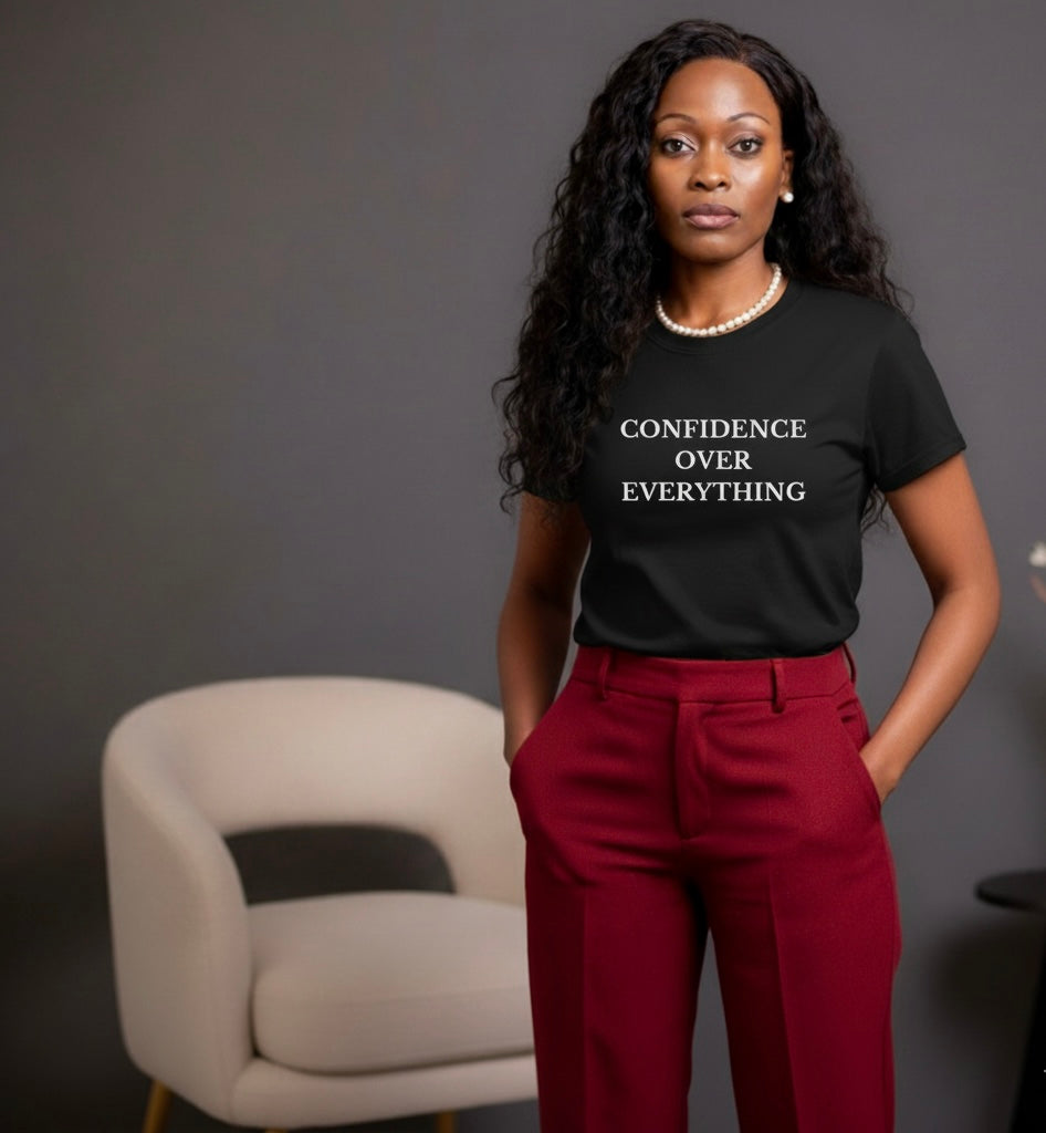 Confidence isn’t found—it’s chosen. This tee is your daily reminder to lead with power, walk in purpose, and wear your truth like it was tailored for you. The Confidence Over Everything tee is minimal, bold, and deeply intentional. Whether you’re heading into a room, a routine, or a reset, let your shirt say what your soul already knows: