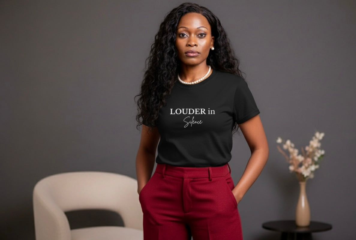 You don’t need to shout to be heard. You don’t have to prove to take up space. Some women lead with presence—not volume. The Louder in Silence tee is made for the woman who commands a room without raising her voice. She’s soft-spoken, sure-footed, and undeniably powerful. Her energy enters first—and lingers long after.